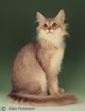 The Somali is moderate looking in all aspects with smooth planes on the head. The triangular head has a gentle dip. Large ears sit tilted forward giving an alert, aware look as if always paying attention to everything. The eyes, which look large in the face, show the alertness and intelligence inherent in the breed.The coat on the Somali is full with exaggerated tufts of hair in the ears. The fur is soft without being woolly and the tail is fluffy like a fox's tail. The colouring of the Somali is special. The majority of the fur has bands of colour on each individual hair, with the coat looking darker along the spine line. The colour on the body softens and lightens under the neck and the underside of the cat and the insides of the legs. Somali’s have a wild look but is not at all extreme except in the colour of the fur, which carries bands of colour giving a richness and depth not seen in other breeds.|