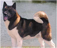 The full, curled tail is proportionate with the large head. The male Akita stands between 26 and 28 inches and weighs about 110 pounds (50 kilograms). The female is between 24 and 26 inches and weighs about 80 pounds (36 kilograms). The broad chest and neck of the Akita serve as a solid base for the large head, the Akita's most distinguishing feature. The broad head and short muzzle form a blunt triangle when viewed from the top. The Akita has small eyes and erect ears, giving the breed a very dignified expression. The body is muscular and the legs are straight and strong. The tail is large and full, and carried high, usually curled over the body.The coat of the Akita is short to medium in length and very dense. A thick, soft undercoat makes the Akita well suited to colder climates, although the coat will thin out considerably during warmer months. The outer coat, or guard hair, is slightly longer and coarser. Some Akitas have long hair, and although not correct for purposes of show, they are attractive dogs in their own right. Colors of the Akita include white, brindle and pinto. White Akitas have no mask. Pinto has a white background with large patches of color covering the body. The undercoat may be a different color from the outer coat, but the colors are always clear and bold. The striking appearance of the Akita has contributed to its steady growth in popularity.|