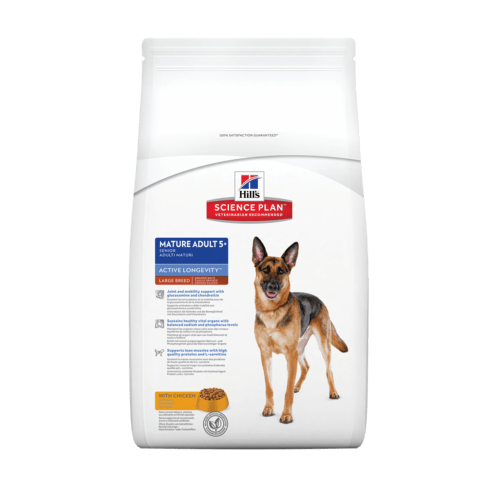 Hill's™ <span class='nowrap'>Science Plan™</span> Canine Mature Adult 5+ Active Longevity™ Large Breed with Chicken is formulated to sustain mobility, lean muscles and organ health, for large breed dogs. With clinically proven antioxidants and L-carnitine.